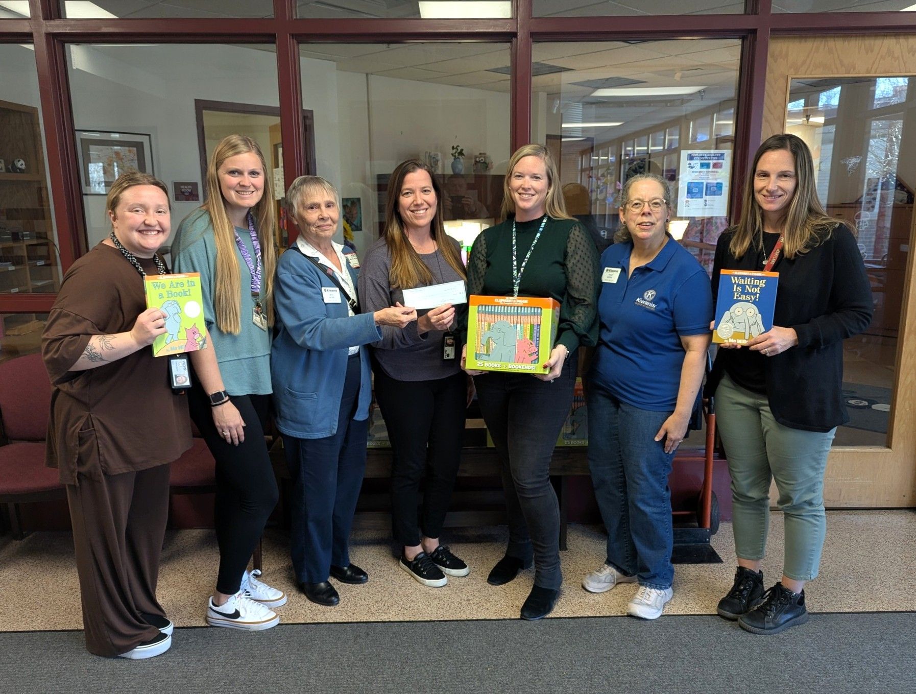 November 2025 - Members Beth Jacobs and Angie Norwood Moore presented 127 Elephant & Piggie books to the Kindergarten and Pre-K students at Twin Ridge ES. The Kindergarten team, led by Amy del Aguila, will distribute the books to the students. A $150 donation to the school’s Media Center was also presented at that time.